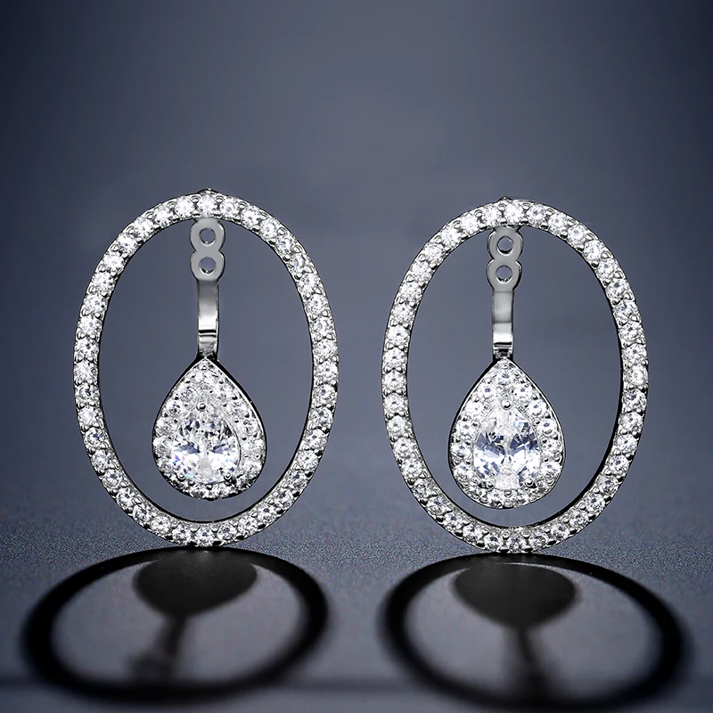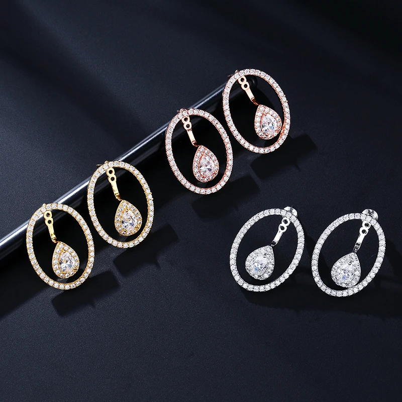Round Cutout Design Zircon Water Drop Earrings for Women